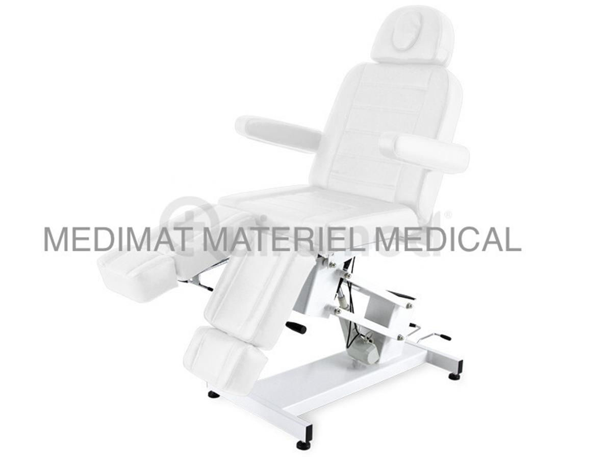Fauteuil-divan électrique avec une finition simple mais avec toutes les caractéristiques basiques nécessaires pour toutes activité. La hauteur est réglable par télecommande ainsi que l'inclinaison et le dossier par verrin hydraulique